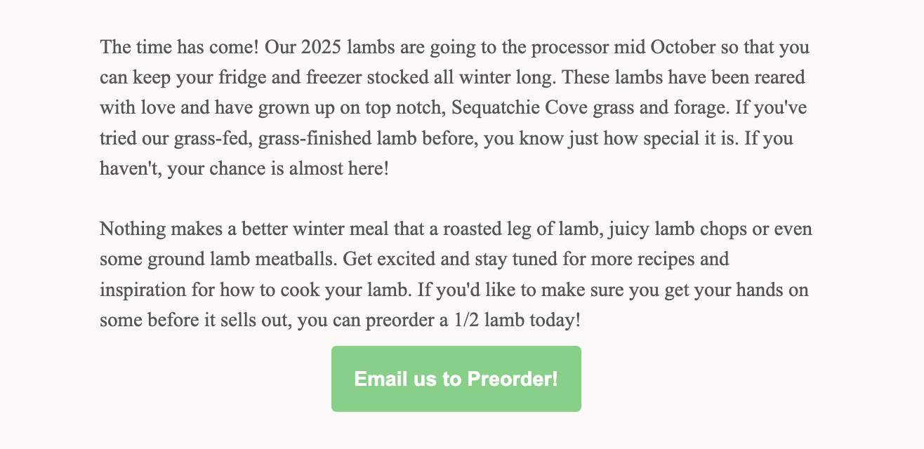 - Sequatchie Cove Farm is taking pre-orders for fall lambs.