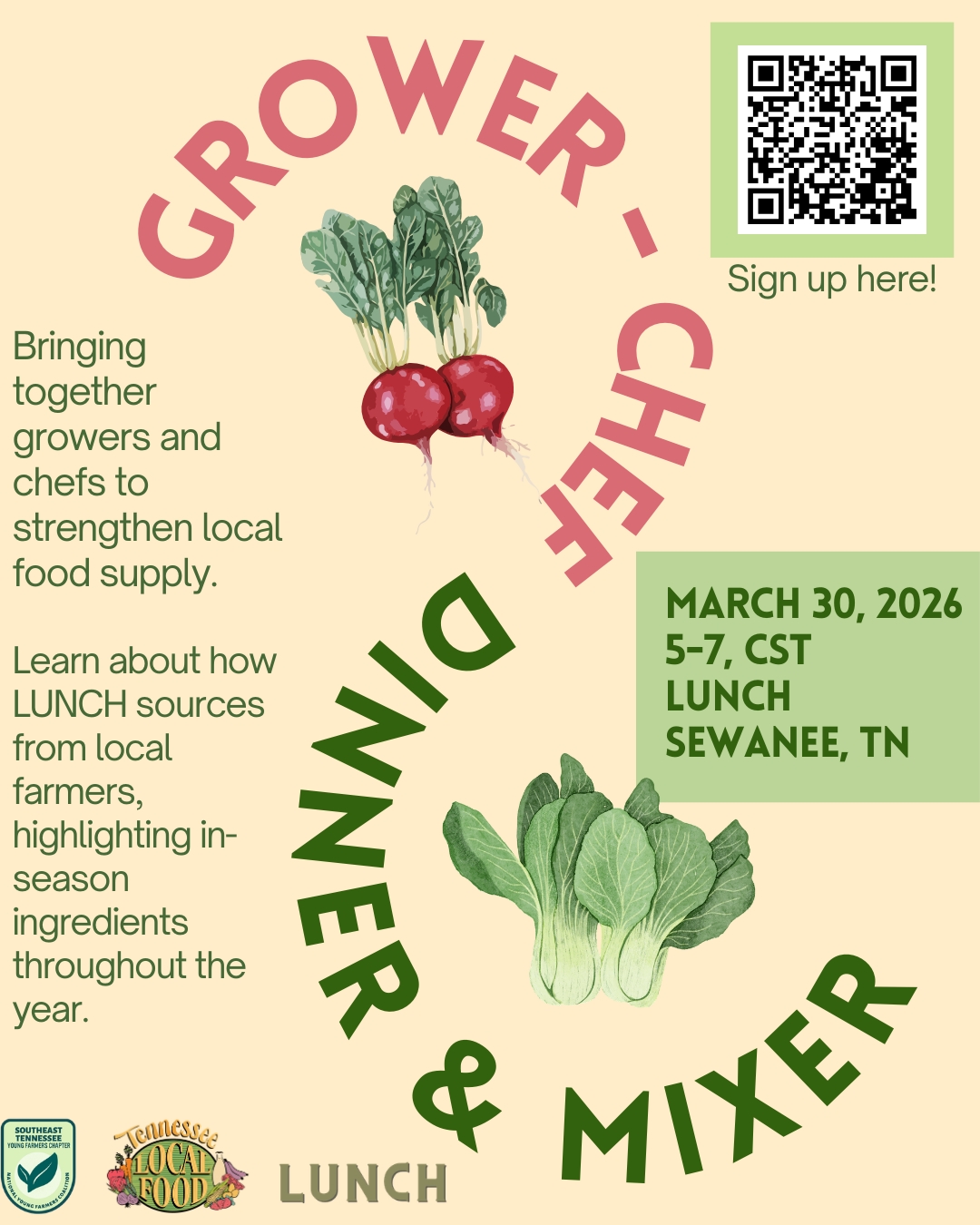 On Monday, March 30, our friends at LUNCH are hosting a special gathering, inviting all regional growers and chefs together.